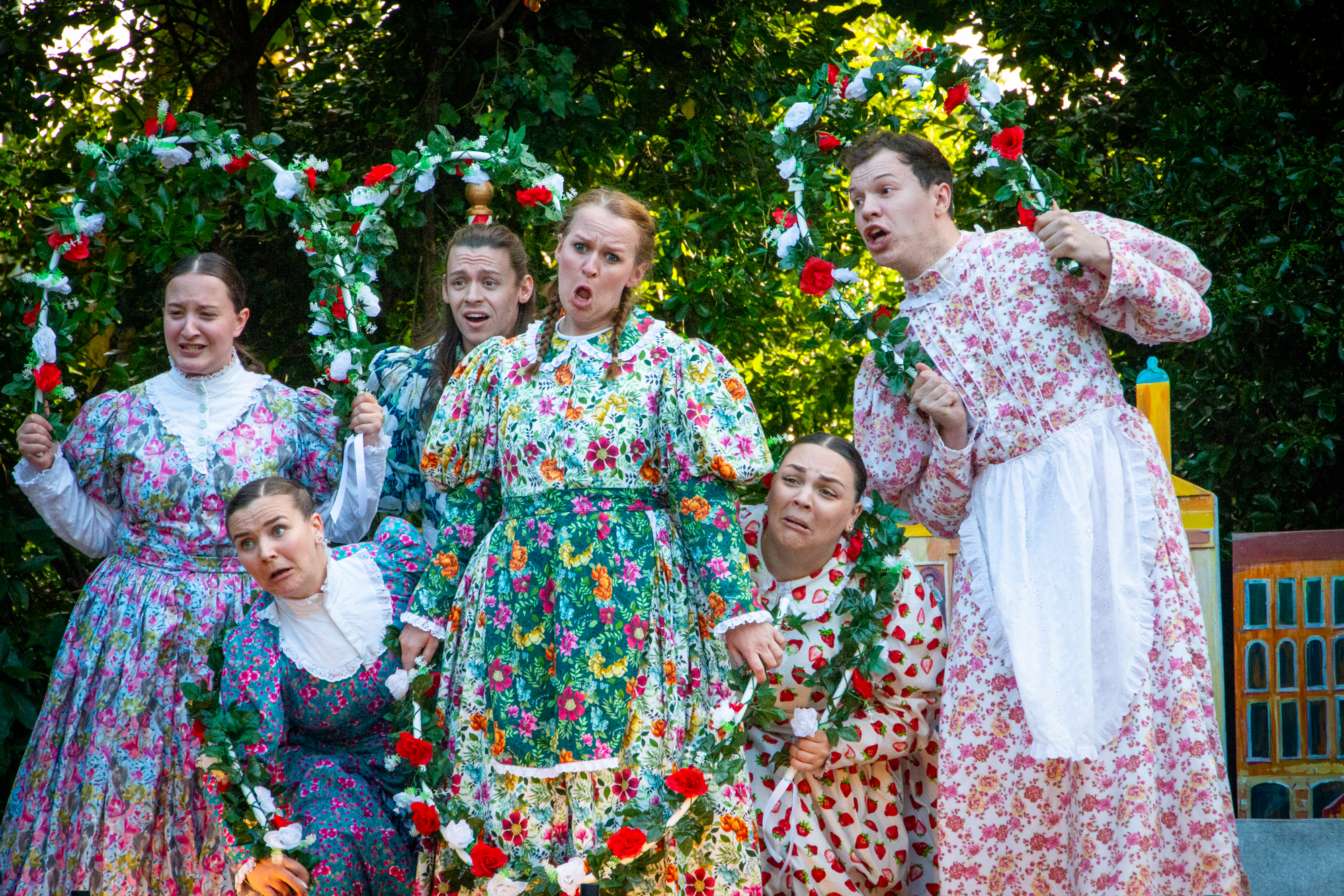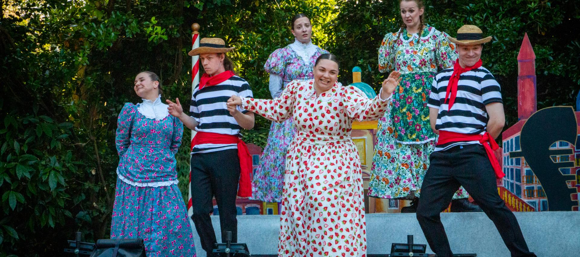 Image Summer Theatre on the Manor Lawn 11 July 2024 Theatre on the manor lawn Cogges' popular outdoor theatre returned to the farm with two fantastic productions on the manor lawn. Love is in the air as Witney's own Truth Told Theatre performed Shakespeare's 'Romeo and Juliet' in July; and, award winning touring theatre company, Illyria, returns with Gilbert and Sullivan's operetta 'The Gondoliers' on 5th September.Truth Told Theatre is a new venture for local thespian and fan of 'The Bard', Louise Taney, who directed and performed in Romeo and Juliet for three evenings. Thanks to Witney MP, Councillor Charlie Maynard, for coming along, and said: "For never was a story of more woe, Than this of Juliet and her Romeo." An amazing production of Romeo and Juliet at Cogges Manor Farm last night! Great actors brought together by Truth Told Theatre. Lots of humour too. We loved it. A big thank you to everyone who made it happen."Fear not, there will be another chance to enjoy theatre on the lawn, as the fantastic Illyria return with Gilbert and Sullivan's classic, The Gondoliers! The Gondoliers with Illyria Cogges is the new Venice (our summer weather aside) in September. Illyria are well known for their innovative, quality performances over the last 30 plus years from rock operas to children's theatre, alternative classics as well as a reputable Shakespeare repertoire. They have been performing Gilbert and Sullivan's operettas since 2011, and are now bringing a touch of venetian charm to the farm! Expect enchanting rendition that promises an evening of laughter, music, and pure entertainment. With catchy melodies and witty lyrics, Illyria brings the vivacious characters to life, captivating audiences with their impeccable comedic timing and exuberant performances. Another tale of love – as the plot thickens and the absurdity reaches its peak, love triumphs and the gondoliers discover that happiness lies not in noble titles but in the simplicity of true love.“At its best, theatre is shared storytelling. And to experience this in the open air is uniquely special.” says Artistic Director Oliver Gray. “Outdoors, with good company, good food and a glass of something bubbly is a much less formal way to enjoy theatre. There’s no better way to celebrate British summertime.” We recommend a brolly just in case!This year’s Illyria performance will be on 5th September – book your tickets. Visitors can bring their own low-back chair or blanket, and are advised to dress for the weather! There will be a bar with snacks and ice-cream, and the play is suitable for younger children to come along with their families. Truth Told Theatre Hailed as his greatest tragedy, this tale of ‘star-crossed lovers’ from two feuding families still resonates today. Covering the themes of love, hate, grief, remorse and more, 'Romeo and Juliet' thrilled audiences with an action-packed show. Director Louise Taney's passion for Shakespeare is the driving force for her theatre company, where she has a mission for everyone to enjoy his plays!Louise says “I love the unique setting of Cogges: it’s in a town and yet as soon as you step into the grounds it’s like you’re in a different time from a bygone era, which is so special for performing Shakespeare.”It was during her training at The Oxford School of Drama where Louise developed a love of Shakespeare. She condenses his plays down to a manageable performance duration of two hours and strives to make her shows visually stunning, fast paced and full of action, so contemporary audiences of all ages and life experiences can relate.Louise says, “Romeo and Juliet is the original teen drama that ends in tragedy. Although the ending is extreme, similar storylines can be seen in modern soap operas such as Eastenders and Hollyoaks; it’s about teenagers not being listened to and being forced to conform to the rules of the adult world, along with gang warfare, all of which are still relevant today”. Updated 24 July 2024